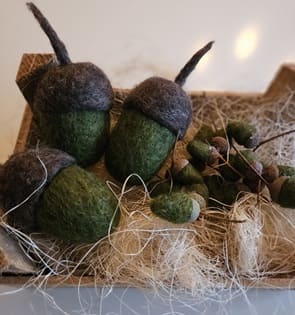 Stort ekollon: ca 9 cm (utan skaft), ca 6 cm i diam., pris: 80 kr/st